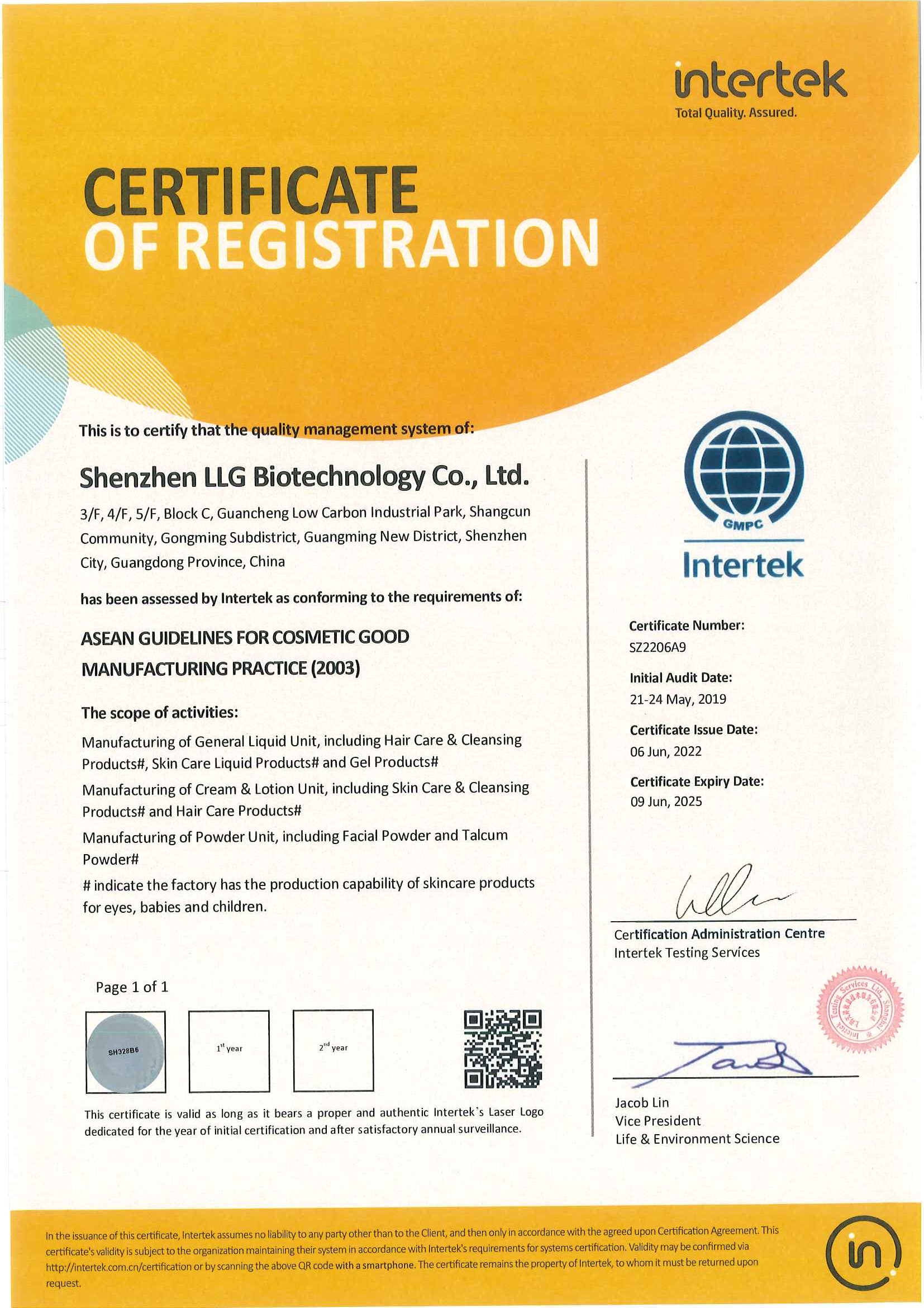 東盟GMPC認證證書英文-SZ1906B5